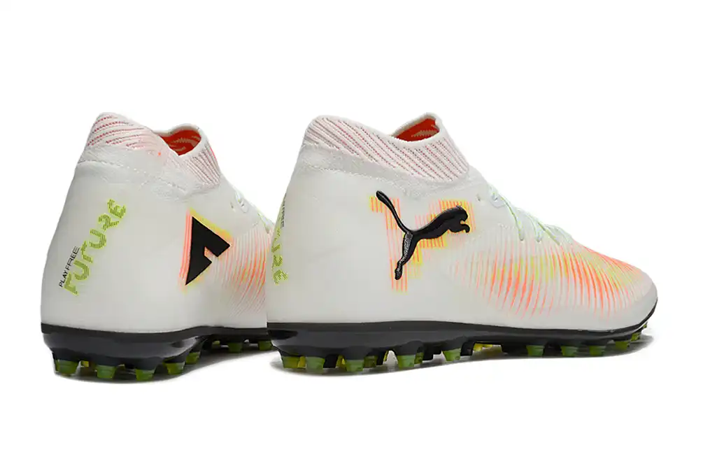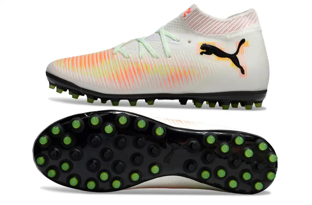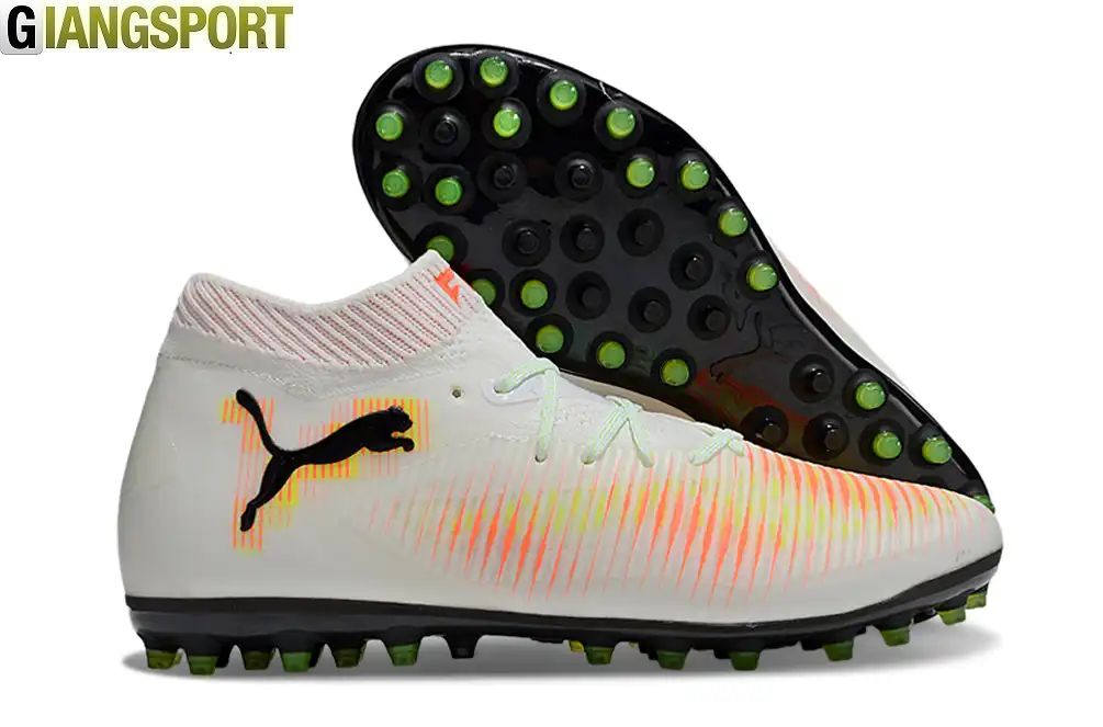 Điểm đặc trưng của dòng Puma Future Ultimate MG là chất liệu da bê mềm, nhẹ, êm cùng với các đường vân nổi trên mu bàn chân, giúp tạo thêm lực xoáy khi tác động với trái banh. Phần đệm đế mềm êm và đàn hồi tốt.